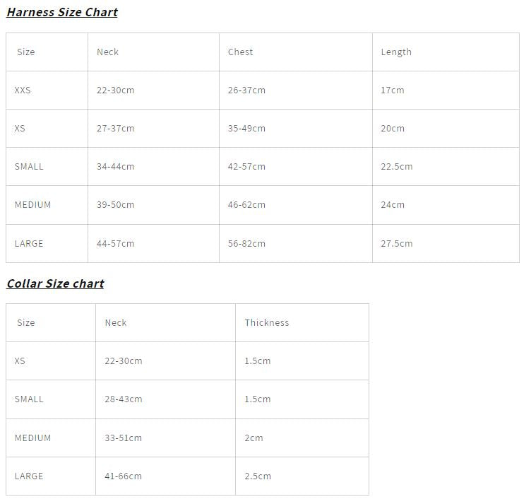 XXS: Neck 22-30cm | Chest 26-37cm | Length 17cm